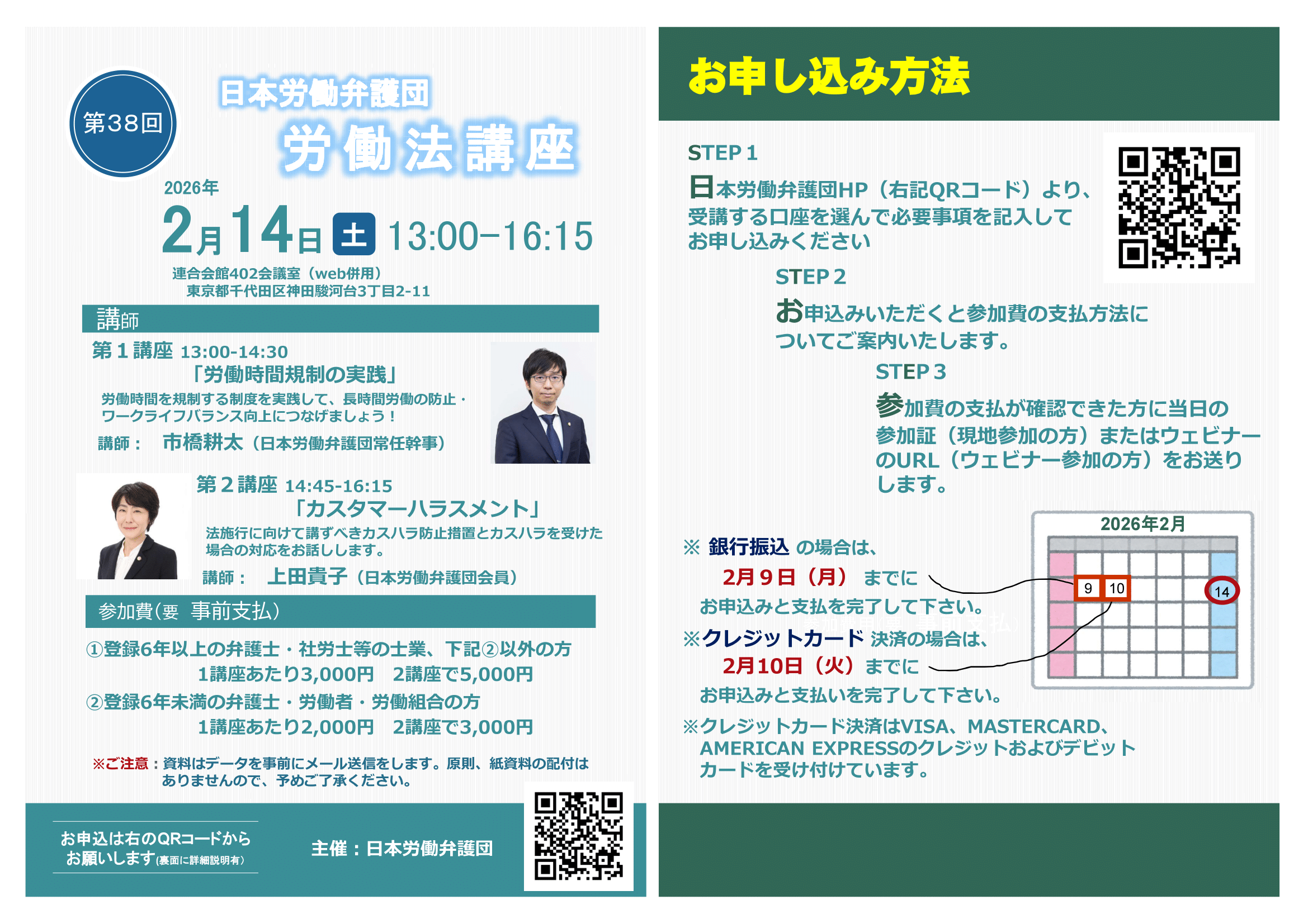 毎年多数の方にご参加いただき、ご好評を博しております日本労働弁護団の労働法講座、次回(2026年)は第38回となりますが、下記要項で開催することになりました。